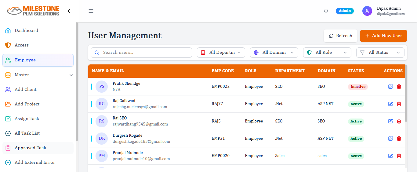 This web-based Employee Management & Project Tracking system enables businesses to efficiently manage workforce performance, track tasks, projects, time utilization, errors, and overall productivity. With role-based access control, detailed reporting, and integrated feedback mechanisms, it helps organizations monitor employee efficiency and project progress in real-time while streamlining performance evaluation and client service delivery.